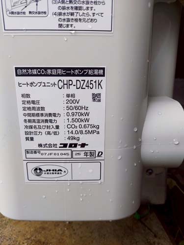 天童市大町 三菱電機自然冷媒ヒートポンプ給湯機 貯湯タンクユニットSRT-HPTK37W2→コロナ自然冷媒CO2家庭用ヒートポンプ給湯機 ヒートポンプユニットCHP-DZ451K エコキュート交換工事 施工前 施工後