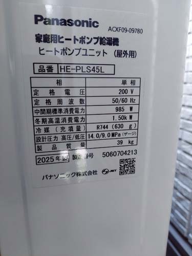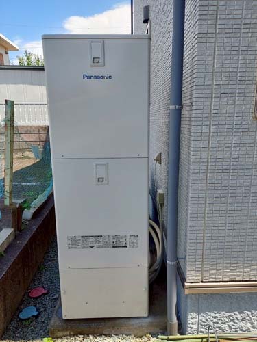 村山市五十沢 パナソニック家庭用ヒートポンプ給湯機 ヒートポンプユニットHE-PLS45L エコキュート交換工事