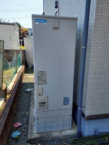村山市五十沢 三菱電機自然冷媒CO2ヒートポンプ給湯機 貯湯タンクユニットSRT-HPTK37W5→パナソニック家庭用ヒートポンプ給湯機 ヒートポンプユニットHE-PLS45L エコキュート交換工事