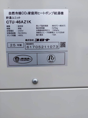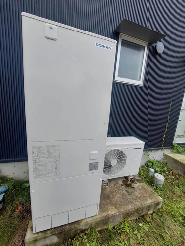 鶴岡市温海 パナソニック家庭用ヒートポンプ給湯機ヒートポンプユニット(屋外用)HE-PL60E→コロナ自然冷媒CO2家庭用ヒートポンプ給湯機ヒートポンプユニットCHP-DZ601K、貯湯ユニットCTU-46AZ1K エコキュート交換工事 施工前 施工後