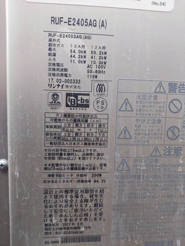 鶴岡市荒沢 リンナイ給湯器RUF-E2405AG(A)→ノーリツ給湯器GT-2470AW 給湯器交換工事