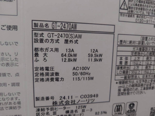 鶴岡市荒沢 ノーリツ給湯器GT-2470AW 給湯器交換工事|山形給湯器・ボイラー激安交換工事|山形給湯器.com